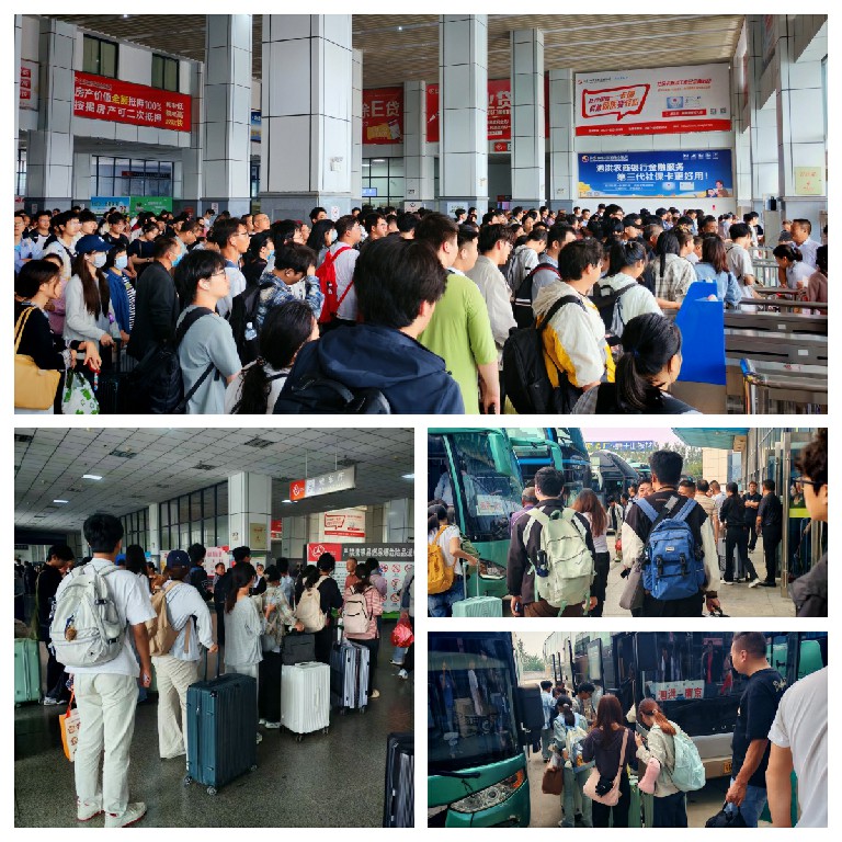 为有效应对返程客流高峰,公司迅速响应、科学调度运力资源。通过精准分析预售数据与客流动态,提前制定精细化运输方案;安排机关科室人员进站进行帮岗,分赴汽车客运南站、东站协助开展环境卫生清洁、进出站秩序引导等服务保障,全力营造舒适有序的乘车环境。尤为突出的是,7日、8日两天定制班车订单量激增,特别是通往徐州方向的需求激增。为此,所属快客分公司紧急启动应急预案,快速调派备用车辆投入运营,并安排具备行车资质、行车经验丰富的人员上车执行加班任务,确保每一趟旅程都安全有序。