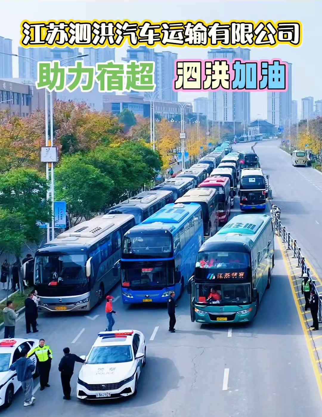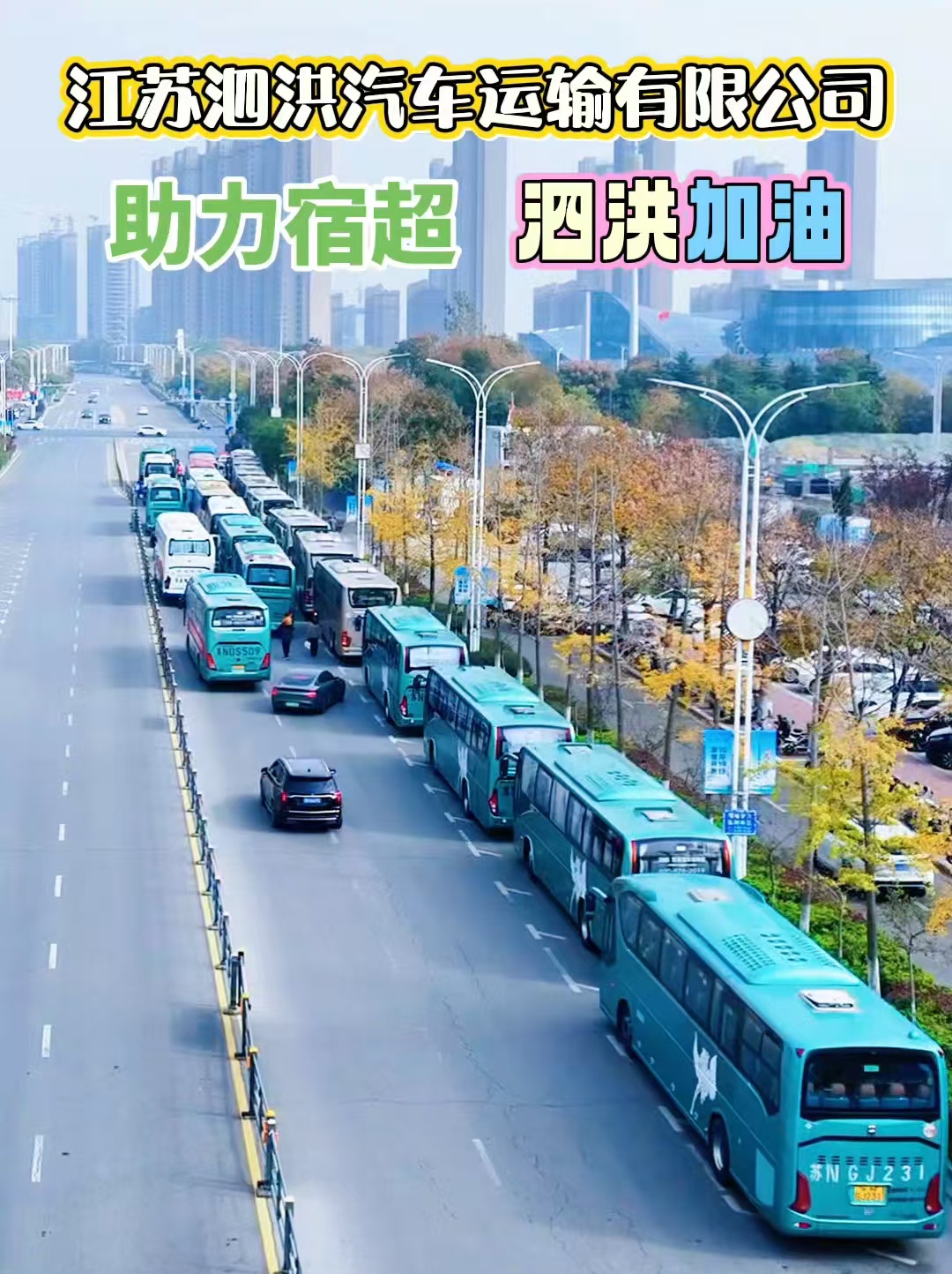 11月15日下午2点30分,2025年宿迁市“霸王杯”县区足球联赛在宿迁奥体中心迎来一场焦点对决——泗洪队对阵宿豫队。为全力支持家乡球队,两千多名足球爱好者跨城出征。我公司积极响应,出动15台车,安全护送泗洪球迷至宿迁奥体中心观赛,并在赛后将他们安全送回。