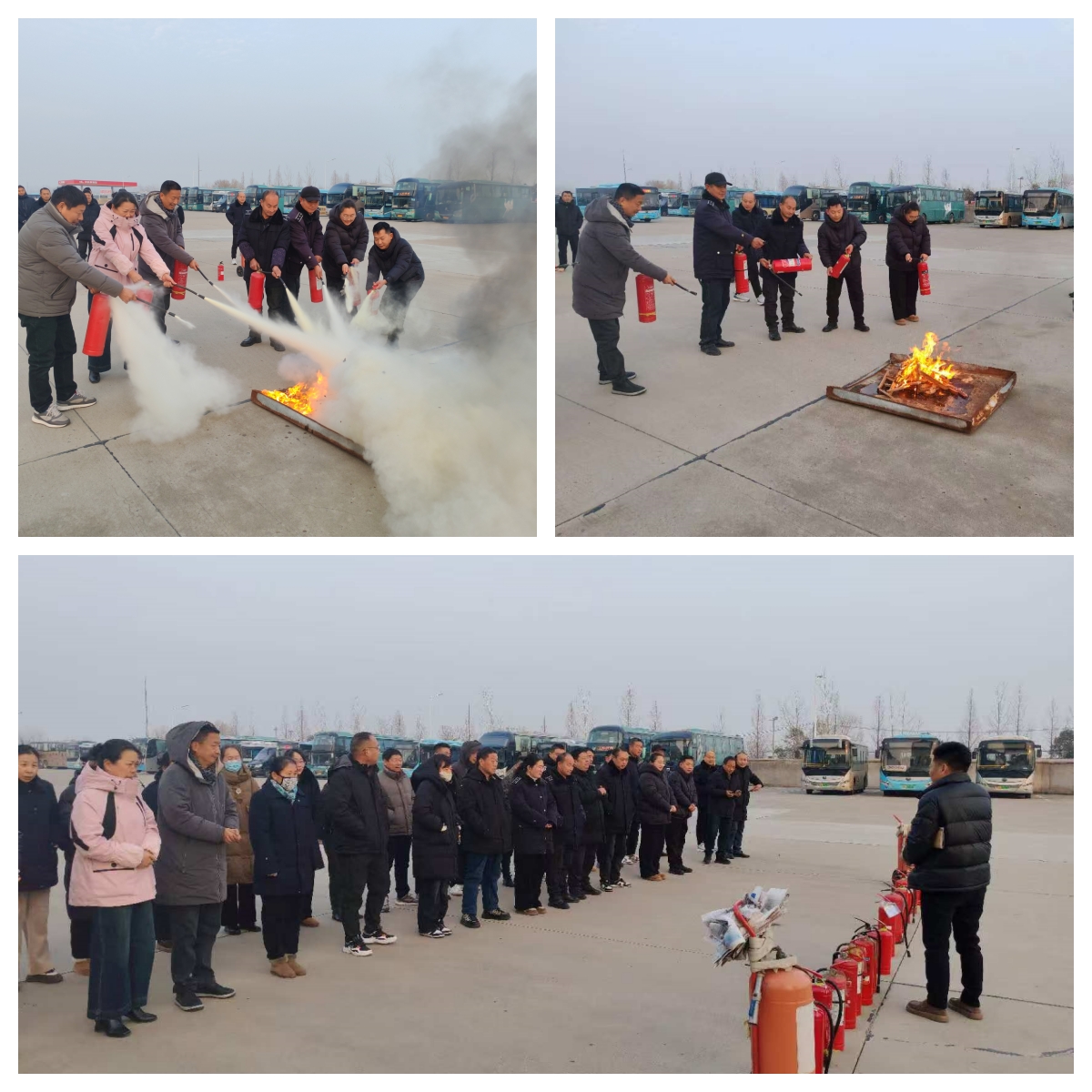 为进一步强化消防安全意识,提升应急处置能力,昨天下午,公司组织开展了消防培训及应急演练活动。此次活动聚集了包括站务人员、驾驶员、修理工以及加油工在内的40余名干部职工积极参与,共同学习消防安全知识,筑牢安全防线。